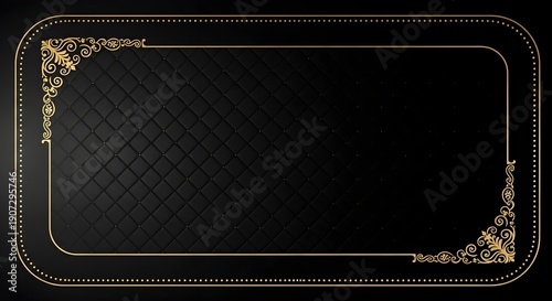Obraz premium Elegant black quilted background frame with luxurious gold baroque corner accents