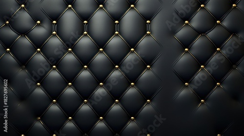 Obraz premium Elegant black quilted leather texture background with golden accents