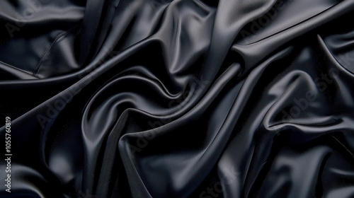 Fototapeta premium Elegant black satin fabric backdrop, smooth texture, versatile for various...