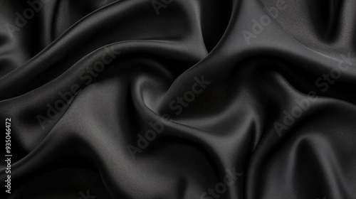 Fototapeta premium Elegant black satin fabric drapes smoothly, creating a luxurious and...