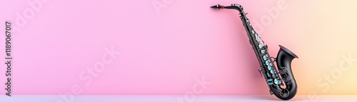 Fototapeta premium Elegant Black Saxophone Against a Soft Gradient Background in Pastel Pink and...