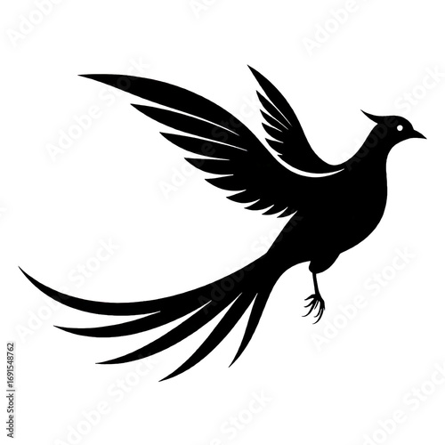 © MDMrl, Obraz premium Elegant black silhouette of a bird in flight with long tail feather