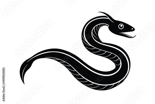 © SandhaRani, Obraz premium Elegant black silhouette of a curving eel aquatic animal