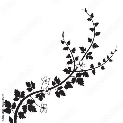 Naklejka premium Elegant black silhouette of a delicate flowering vine with leaves on white...