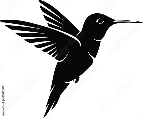 Fototapeta premium Elegant Black Silhouette of a Hummingbird in Flight Against a Clean White Background Design