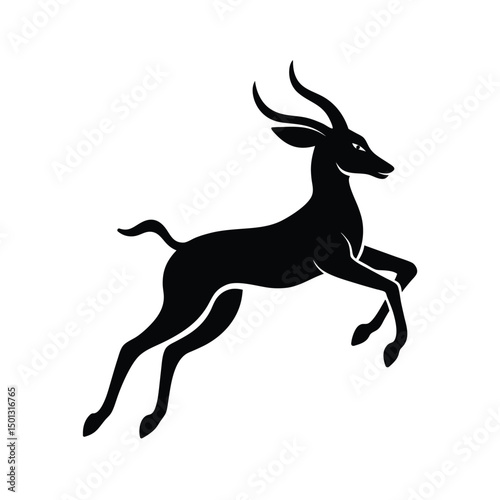 © SanoarH, Obraz premium Elegant black silhouette of a jumping antelope vector isolated on white background