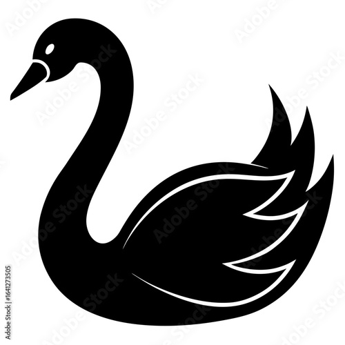 © Shamim, Obraz premium Elegant black silhouette of a swan in flight