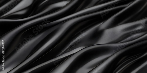 © Ilja, Obraz premium Elegant Black Silk Fabric Background for Luxurious Drapery with Opulent Texture and Modern Design