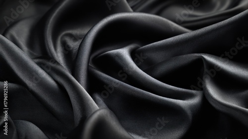 © Mustofa, Obraz premium Elegant black silk fabric background texture detail close up