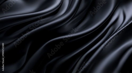Obraz premium Elegant black silk fabric flow textile store image capture soft texture...