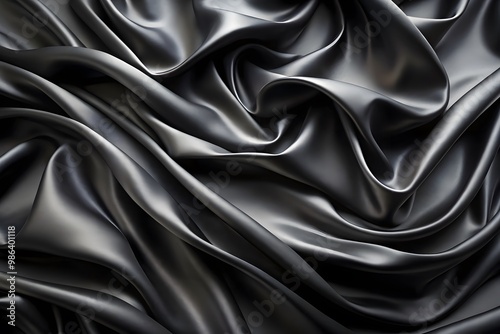 © AG2024, Fototapeta premium Elegant Black Silk Waves. Luxury Abstract Liquid Cloth Folds Background and Wallpaper Design
