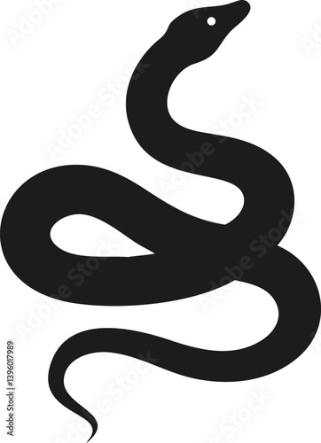Naklejka premium Elegant Black Snake Silhouette, Coiled, Reptilian, Vector, Design, Art,...
