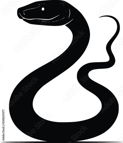 Naklejka premium Elegant Black Snake Vector Illustration: Coiled, Minimalist Design