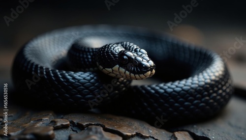 Naklejka premium Elegant black snakeskin, fine grain, rich sheen, exotic, animal print