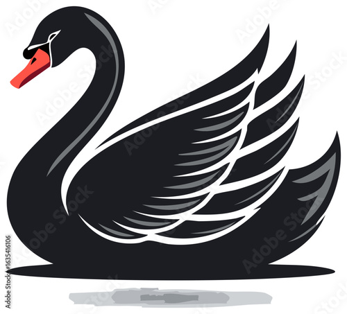 Obraz premium Elegant Black Swan Illustration in Stylized Design with Flowing Wing Pattern,...