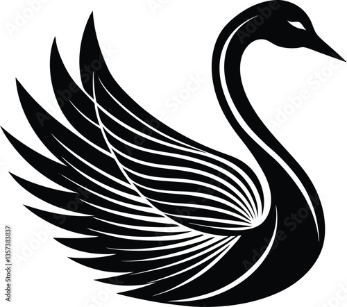 © Tarek, Obraz premium Elegant Black Swan Silhouette with Detailed Wing Design