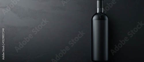 © Solikah, Naklejka premium Elegant Black Wine Bottle on Dark Background: A Minimalist Mockup