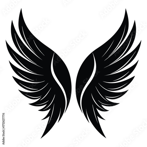© Hasi, Fototapeta premium Elegant Black Wings Illustration on White Background for Design Elements