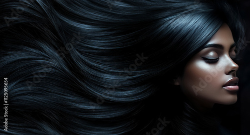 © Birgit Reitz-Hofmann, Obraz premium Elegant black woman showing long and healthy shiny hair flowing in the wind