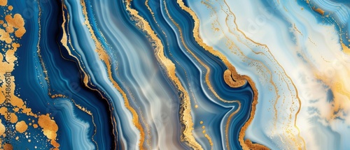 © Mitzuha, Fototapeta premium Elegant blue and gold marble pattern, ideal for sophisticated design projects, branding, and advertising materials, offering a luxurious and modern aesthetic.
