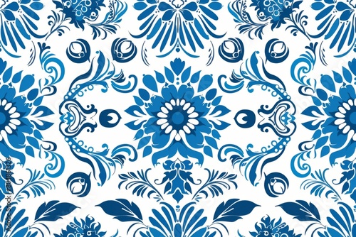 © Flow_control, Fototapeta premium Elegant Blue and White Floral Pattern Wallpaper Design