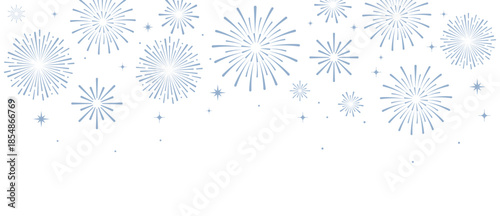 © bibin, Fototapeta premium Elegant blue fireworks burst and sparkling stars on clean white background, festive celebration illustration for New Year, holiday party, greeting card, luxury event design, minimalist style vector.