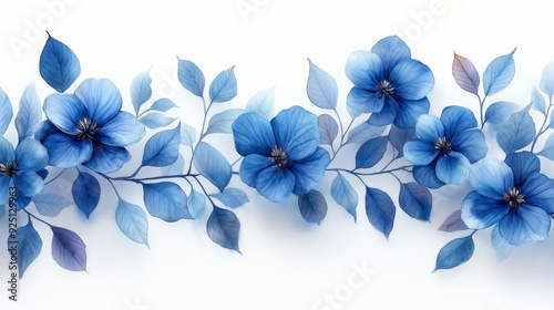 Fototapeta premium Elegant blue flowers with watercolor effect - generative ai