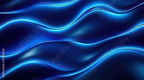 Obraz premium Elegant blue neon waves with a soft glow, perfect for a tranquil and stylish...