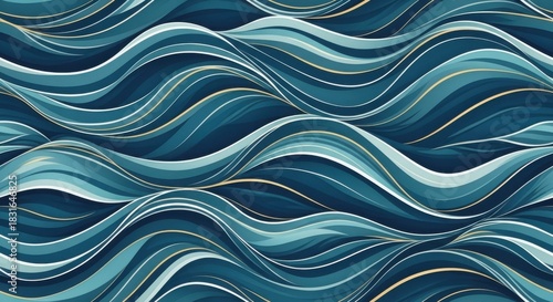 Fototapeta premium Elegant Blue Ocean Waves with Golden Shimmer Pattern