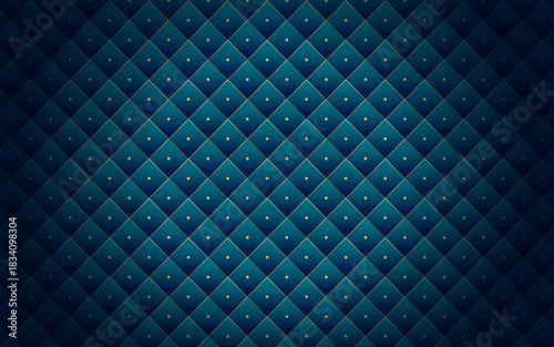 © AbstractZone, Fototapeta premium Elegant blue quilted fabric background with golden accents