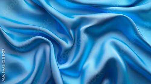 Fototapeta premium Elegant blue satin drapery with soft, smooth texture, perfect for luxury fashion backdrop