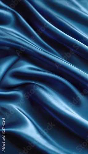 © JetHuynh, Obraz premium Elegant Blue Satin Fabric Drapes, Soft Texture, Luxurious Waves