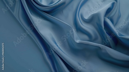 © Artyom, Obraz premium Elegant blue satin fabric with luxurious drapes and smooth texture