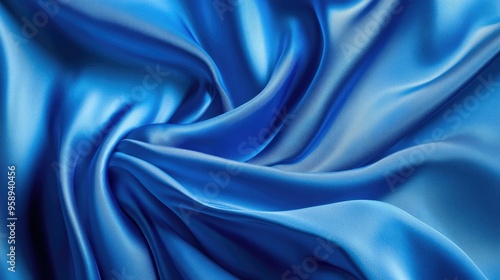 Fototapeta premium Elegant blue silk fabric flowing in the wind, smooth texture and rich color,...