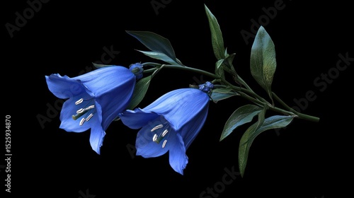 Fototapeta premium Elegant Bluebells on Black Background: A Stunning Botanical Close-Up