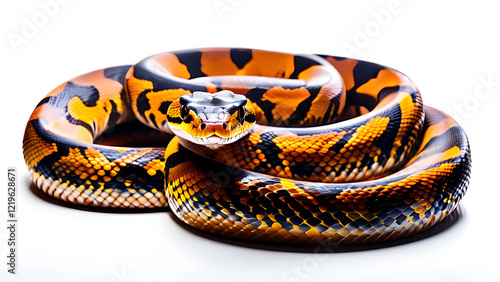 © Maciej, Obraz premium Elegant Boa Constrictor Coiled Gracefully, Showcasing Its Vibrant Patterns and Smooth Scales Against a Seamless White Background