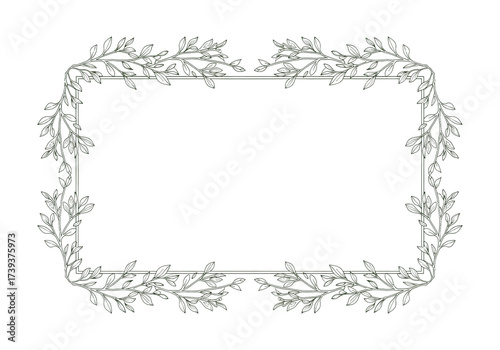 © Wassana, Fototapeta premium Elegant botanical border frame with hand-drawn leaves, perfect for invitations or graphic design.