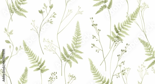Naklejka premium Elegant botanical fern fronds in muted green, perfect for serene designs,...