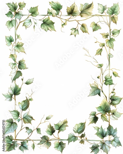 © Nat, Fototapeta premium Elegant botanical frame with green leaves, perfect for invitations or greeting cards, offering a natural and sophisticated touch.