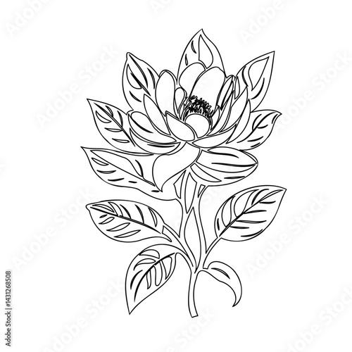 Fototapeta premium Elegant Botanical Illustration: Detailed Line Art of a Blooming Flower Design
