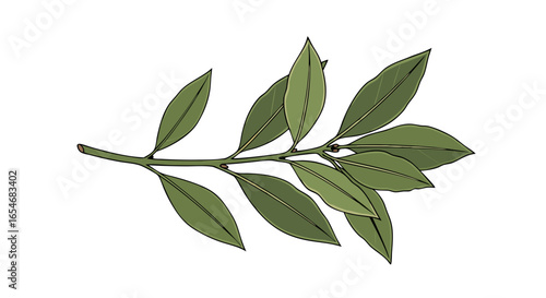 Fototapeta premium Elegant botanical illustration of a sprig with elongated green leaves showcasing natural plant beauty and detailed leaf structure perfect for