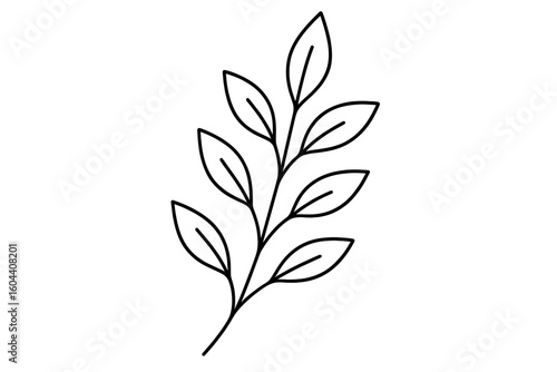 Fototapeta premium Elegant botanical leaf line art. Minimalist plant branch illustration. Simple vector foliage icon for natural logo design, eco-friendly products, or wedding invitation.