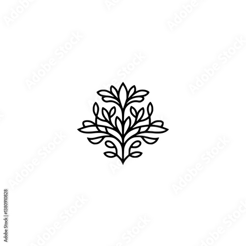Obraz premium Elegant Botanical Logo: Black Line Art Plant, Minimalist Design