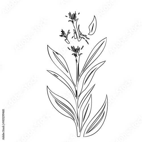 Fototapeta premium Elegant botanical sketch of a flowering plant with delicate linework detail