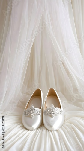© Shehub, Obraz premium Elegant Bridal Satin Shoes with Rhinestone Detail