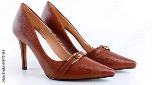 © Tida, Fototapeta premium Elegant Brown Leather Heels - Stylish brown leather high heels with gold buckle detail. Perfect for work or special occasions