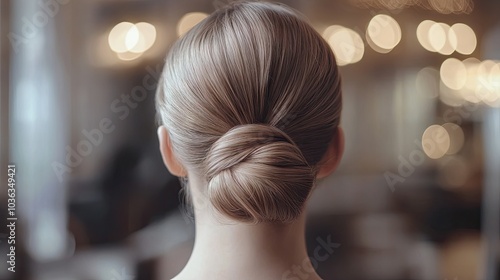 © Pannee, Fototapeta premium Elegant Bun Hairstyle from the Back Perspective