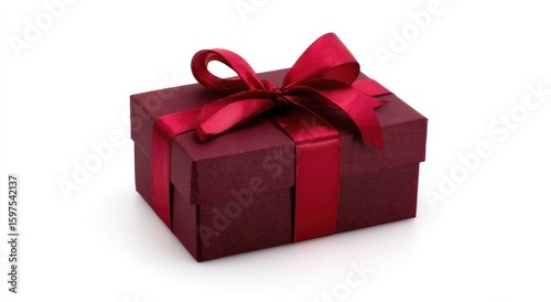 © Tyo, Obraz premium Elegant burgundy gift box with red ribbon