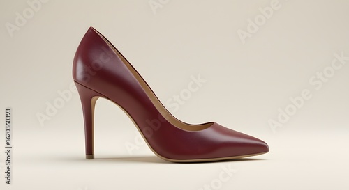 © AlgeranoffWill, Obraz premium Elegant Burgundy Leather High Heel Shoe on Neutral Background