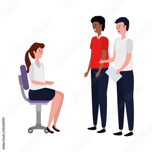 © Gstudio, Fototapeta premium elegant business people workers seated in office chairs